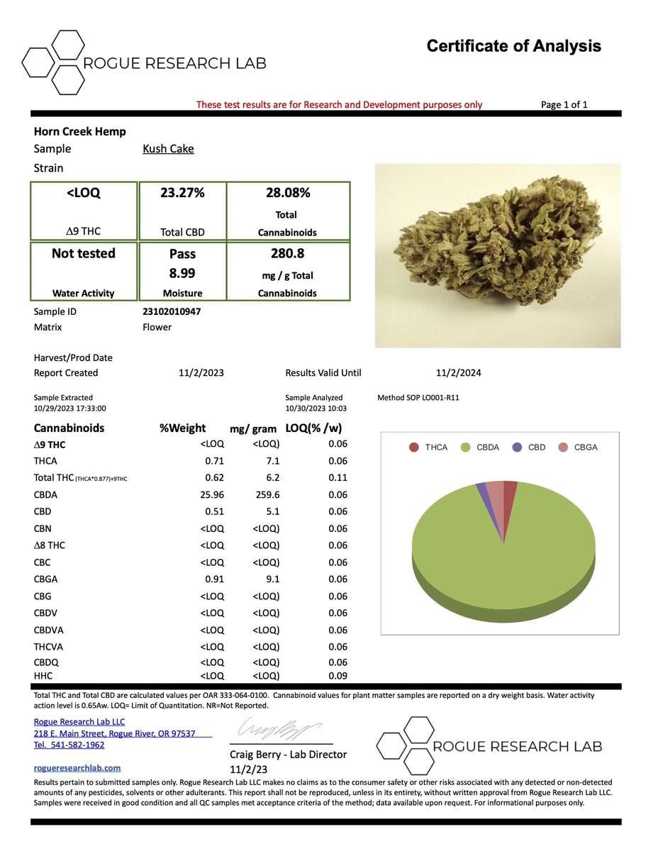 Cannabinoid Content: 23.01% | 19% CBD | < LOQ Delta 9