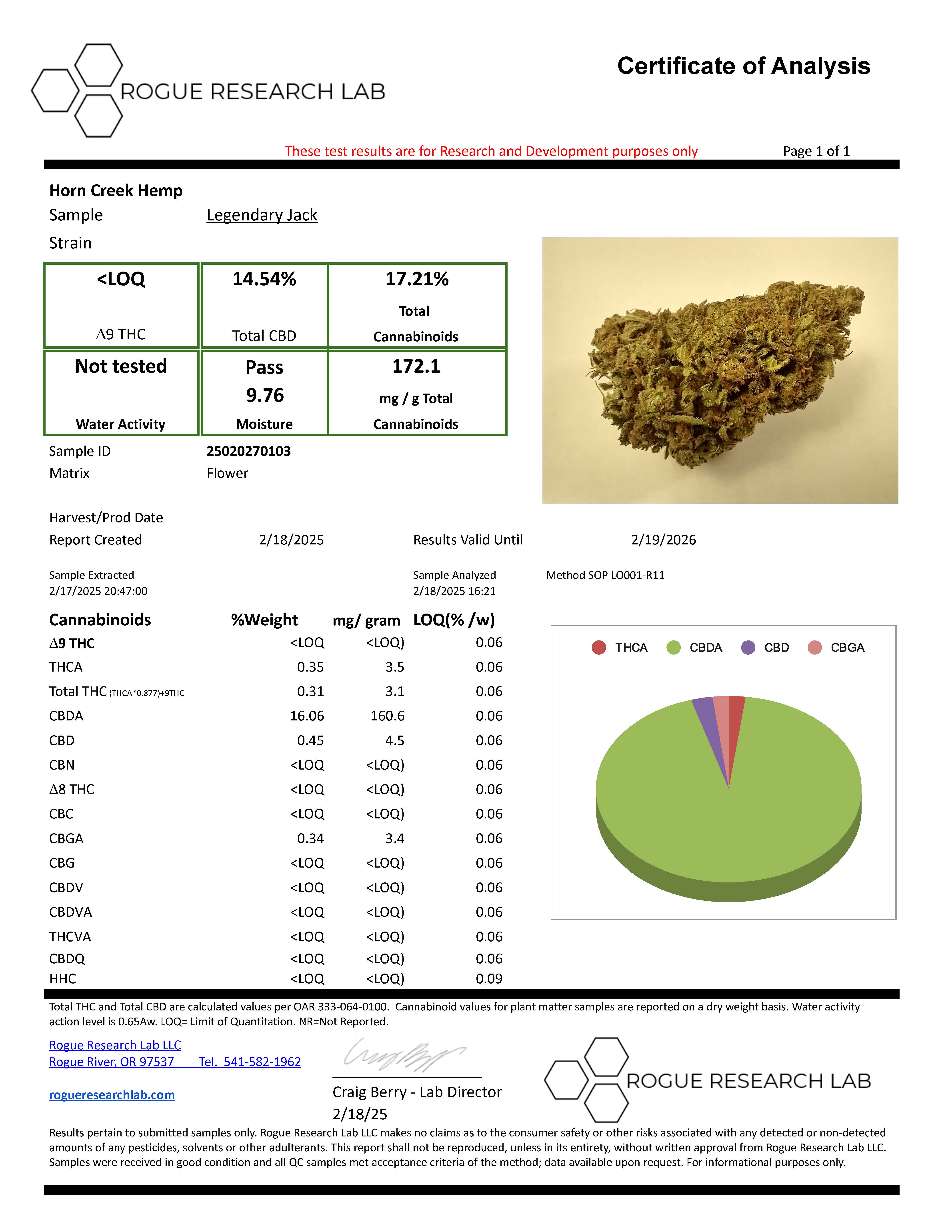 Cannabinoid Content: 20.17% | 16.1% CBD | < LOQ Delta 9